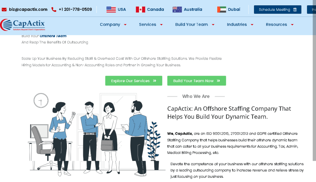 - CapActix Business Solutions, a New York-based company, services accounting firms, CPA firms, and SMEs in the USA, Canada, Australia, and the UAE. Moreover, it offers a wide range of services, including accounting, tax, administration, and medical billing processing.