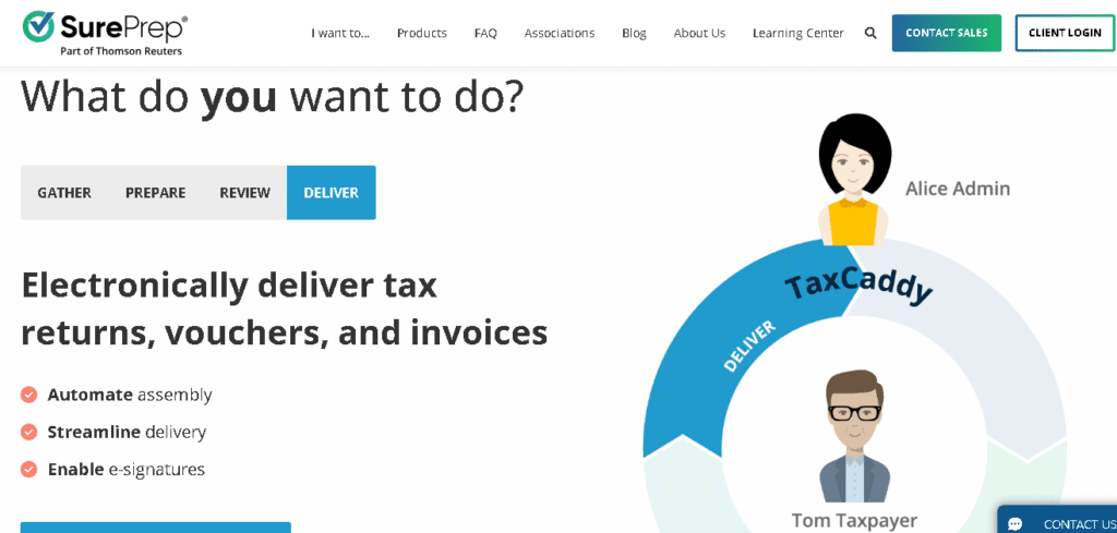- SurePrep offers the software programs TaxCaddy, SPbinder, and 1040SCAN.